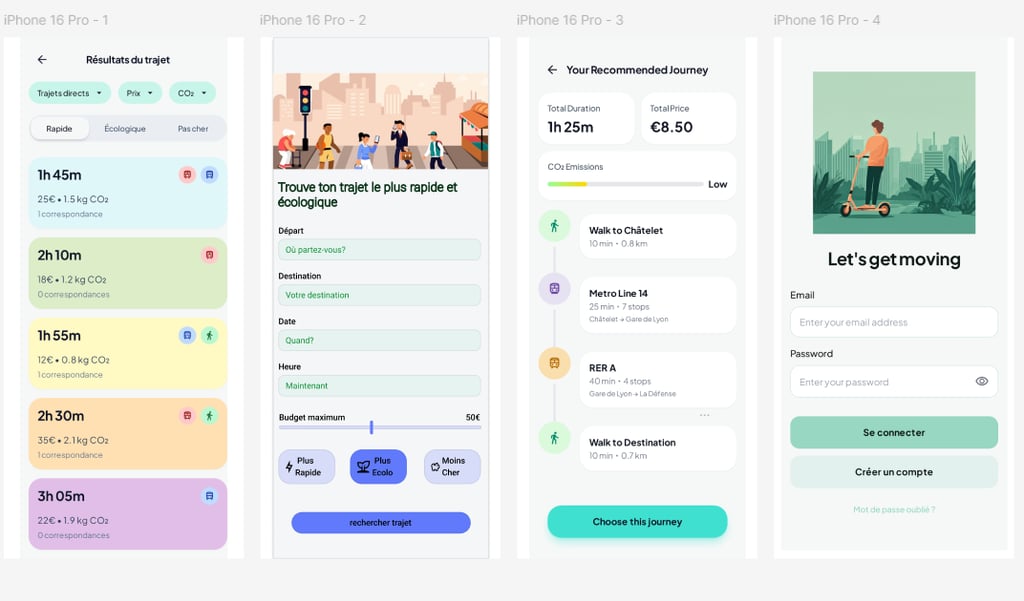 J’ai conçu une application mobile qui permet de comparer différents trajets selon le temps, le prix et l’impact environnemental.