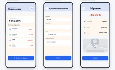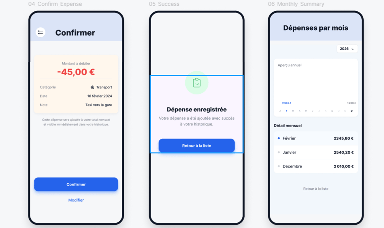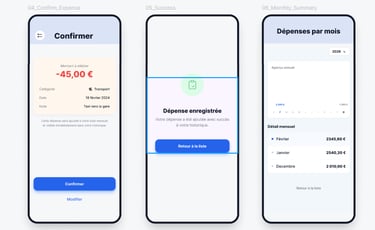 Le projet se concentre sur la simplicité du parcours utilisateur, la clarté des informations et la visualisation du budget mensuel.