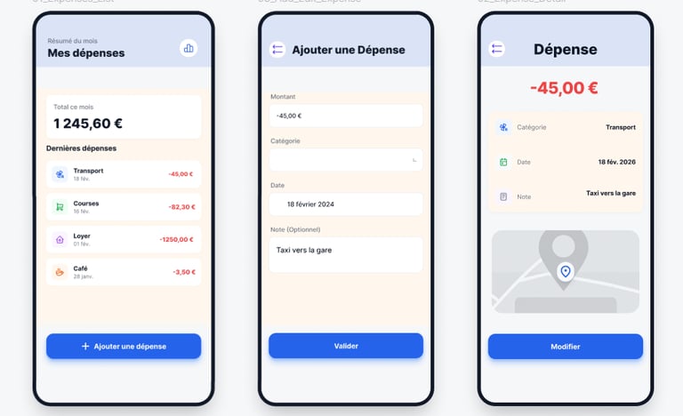 Projet UX/UI d’une application mobile permettant aux utilisateurs d’ajouter, organiser et analyser leurs dépenses.